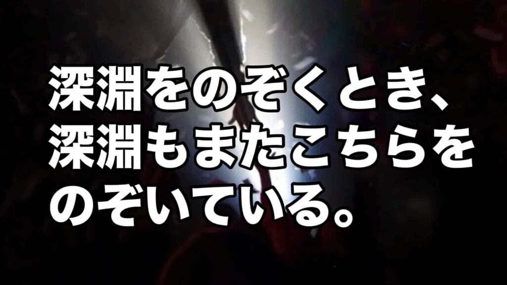 「深淵をのぞくとき、深淵もまたこちらをのぞいている。ニーチェ」